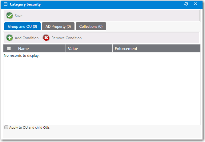 6. Use the Add Condition button to open the Add Condition Dialog Box and add conditions to control access to the reports in this category.