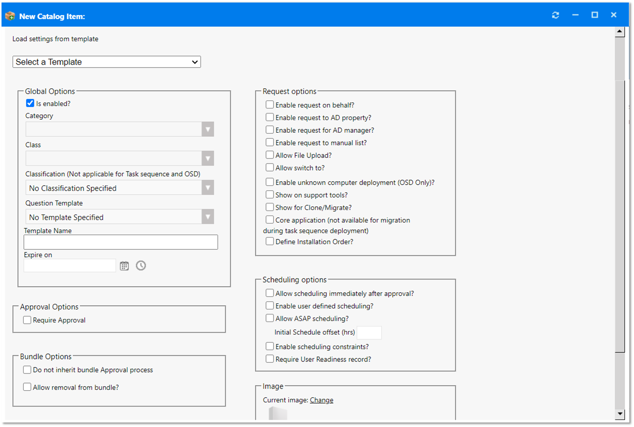- On the General > Global tab of the New Catalog Item Properties dialog box, select the Classification drop-down and select a classification for this catalog item.