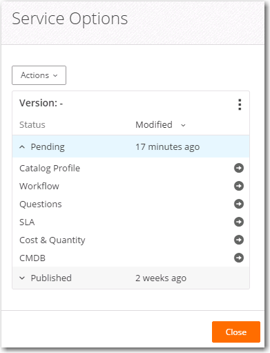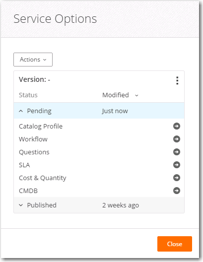 - Double-click on a catalog item, such as Adobe Reader v8.0 . The Service Options view opens.