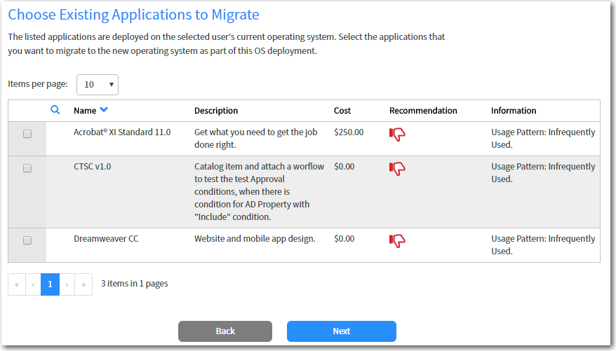 - Select the applications that you want to migrate and then click Next . The Choose Additional Applications to Install During OS Deployment panel opens. Applications that have already been selected in previous panels are already selected and cannot be unselected.