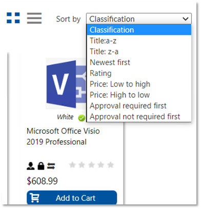 A new entry is added in Sort by list called Classification . This is the default sort by. This is only displayed when the Global Checkbox for Catalog Classification is enabled.