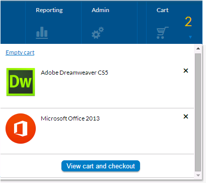 2. Then click either Empty Cart (to remove all items from the cart) or click the X next to the item you want to remove.